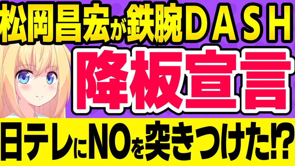 TOKIO松岡「鉄腕DASH降板します。日テレは安全と権利に配慮した番組作りを!」→日テレは鉄腕DASHやめろと大騒ぎにwww