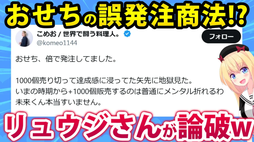 【炎上】料理のプロさん「助けて!おせちを1000個余分に作っちゃって地獄なの!!」→リュウジさんが「そんな訳ねぇ」と論破してしまうwww【こめお 朝倉未来 リュウジ】