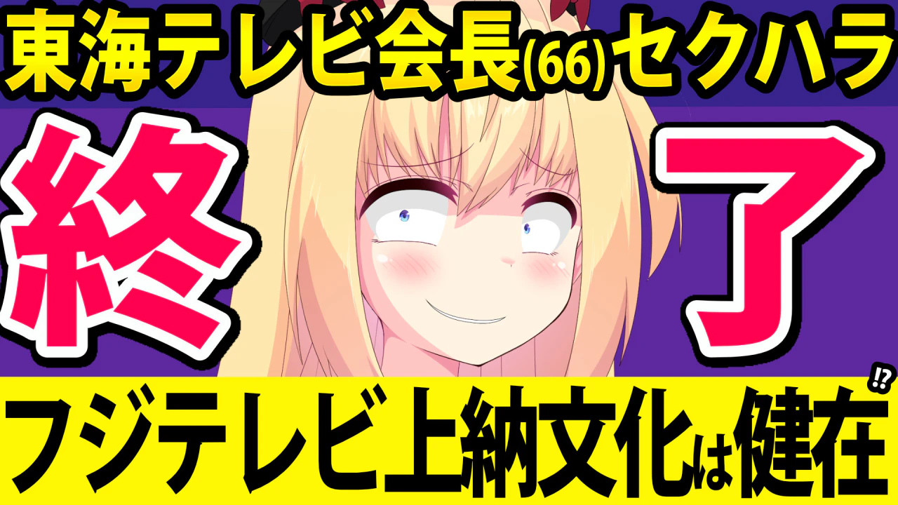 フジテレビの「子分」こと系列局である東海テレビの会長(66歳)が、2022年、女子アナに接待を強要したり、20代・30代の立場の弱い女子社員に複数のセクハラ行為をしたとネット記事が報じたことで話題に。