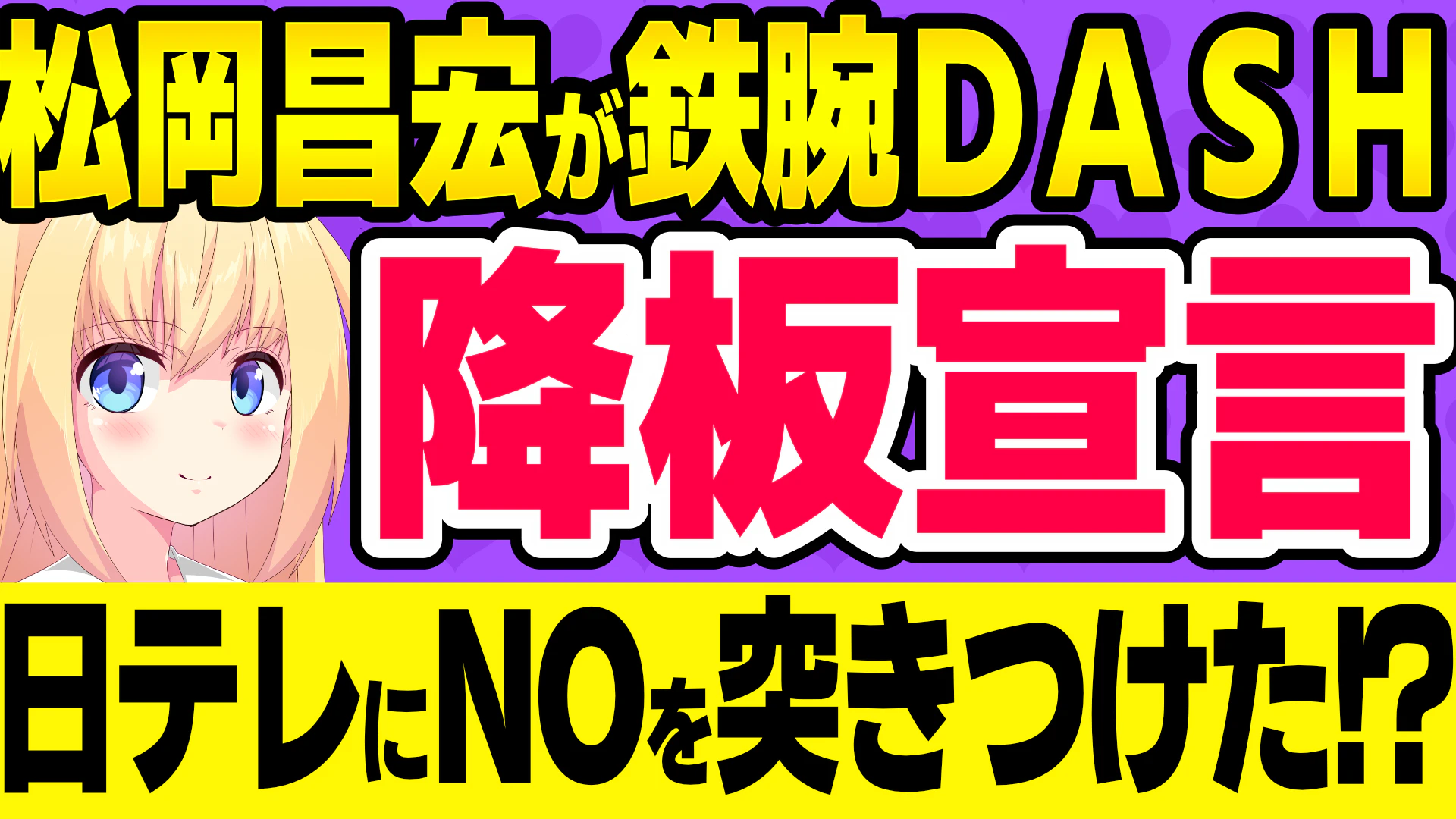 ということでテレビ業界の王者である日テレくんに対して漢気を貫き通してしまった松岡さんが、鉄腕DASHの降板を発表しました。