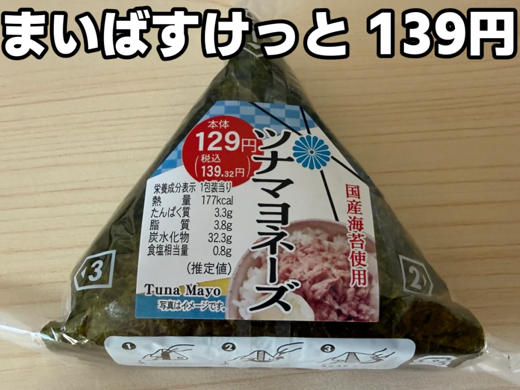 次に「まいばすけっと」のツナマヨおにぎりが139円。