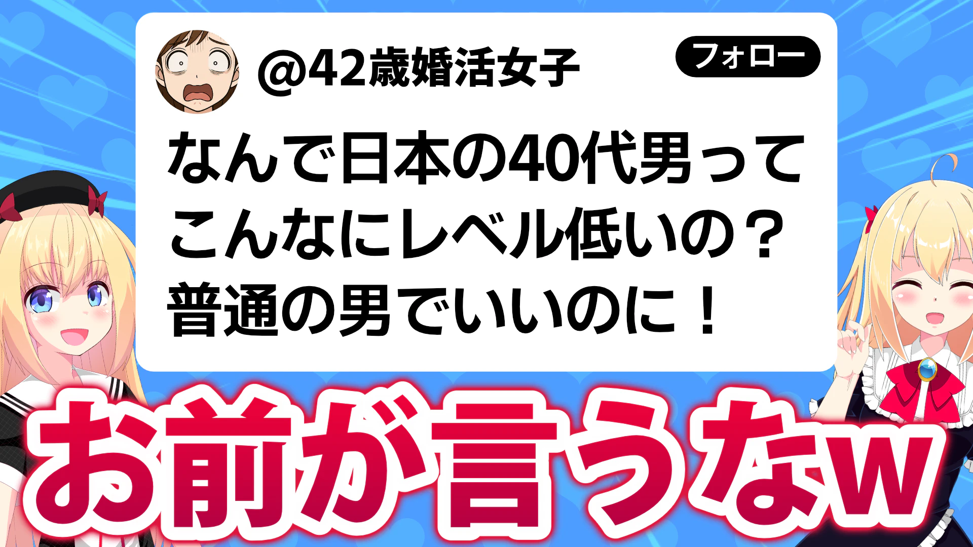 特報!42歳アラフォー婚活女子様「え?40代男性ってこんなにレベルが低いの?」VS「売れ残り女の自覚をしやがれボケナス」とかいう限界婚活バトルがいつ見てもほっこりすぎる件!