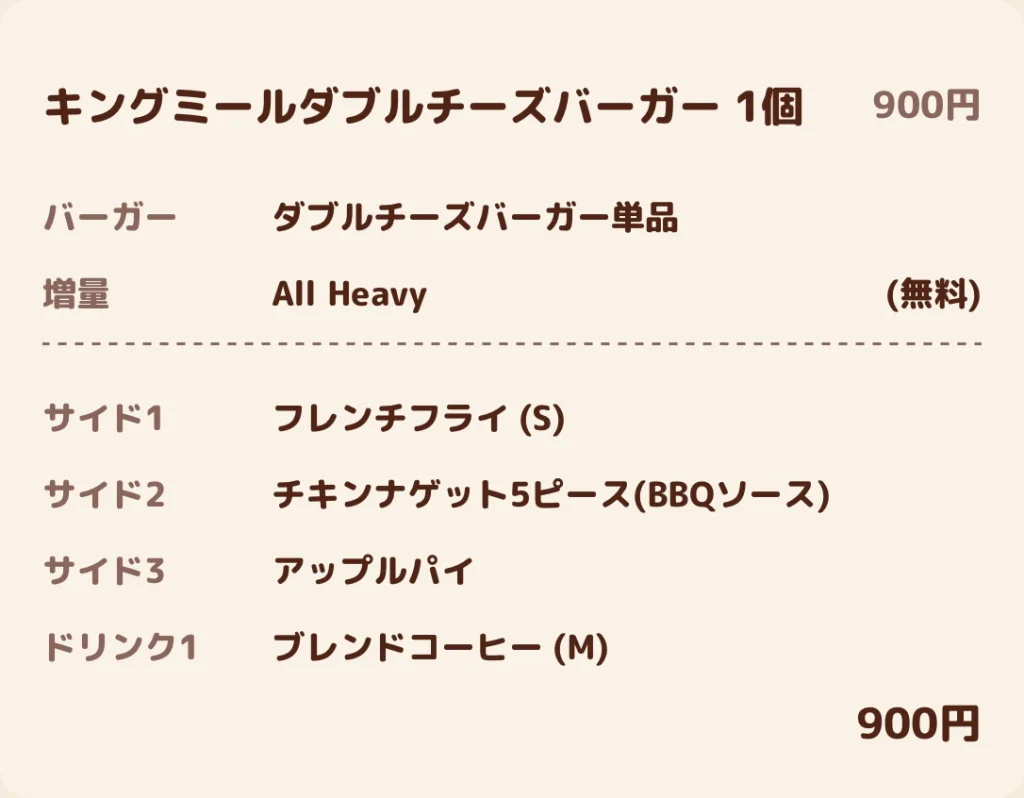 動画投稿主さんが注文したのは、「キングミール」というバーキンの定番セットメニューなのですが、