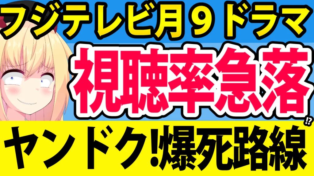 【爆死!?】フジテレビ月9ドラマ、第2話で視聴者が大量離脱!?視聴率が急落してしまう・・・【ヤンドク!第2話レビュー】