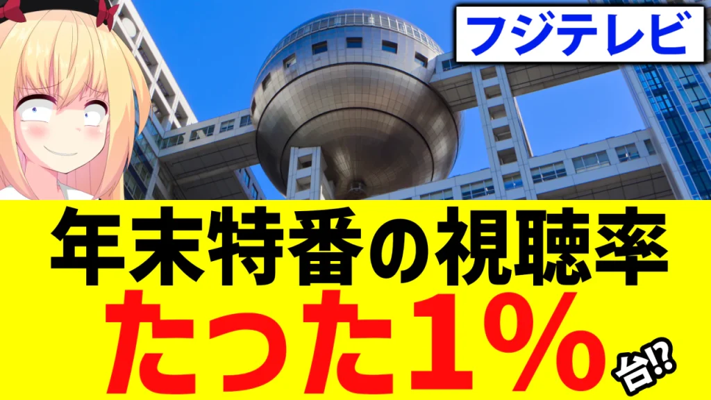 フジテレビ大晦日特番が視聴率1%台!?酷すぎるwww【新しいカギ 霜降り 粗品 チョコプラ】