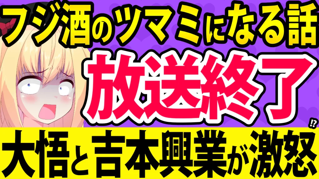 フジテレビ「酒のツマミになる話」終了確定!?大悟がフジテレビに失望&吉本激怒と話題にwww