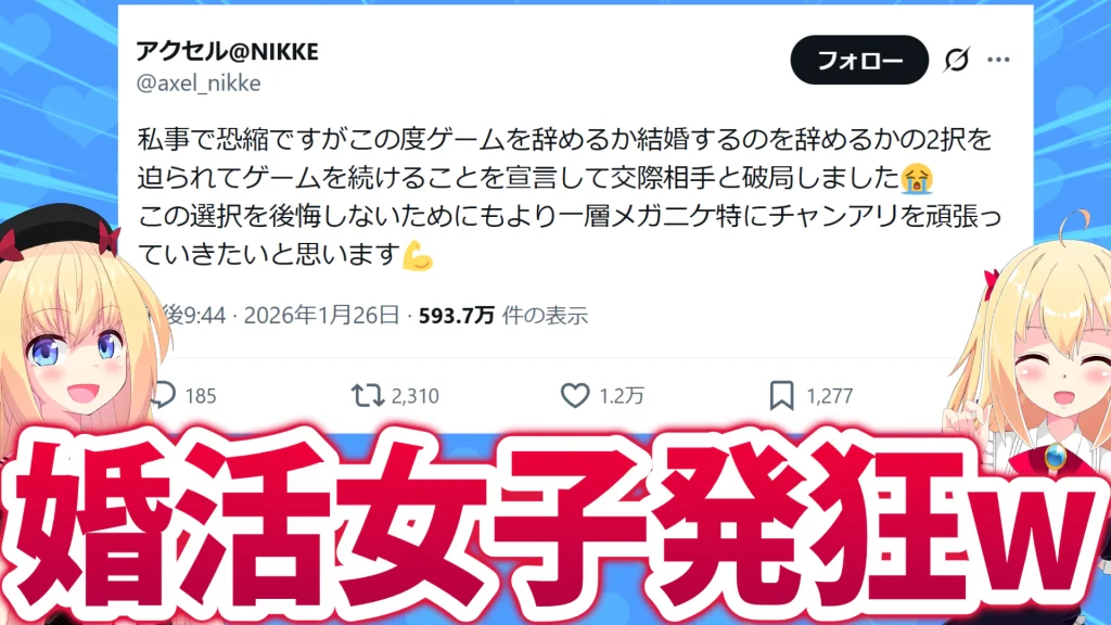 彼女から「結婚するならNIKKEを辞めて!」と言われた男性、無事彼女とお別れしてNIKKEを選んでしまうwww【婚活 勝利の女神NIKKE】